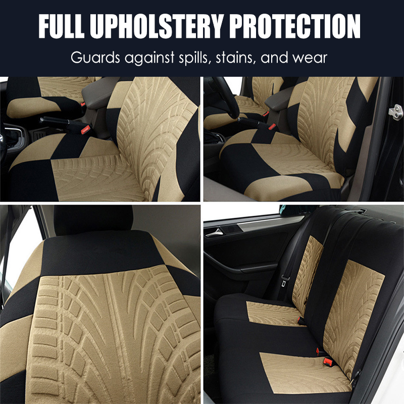 Paketet innehåller: 1 * 2/5-sitsigt bilsätesöverdragsset med däckmönster