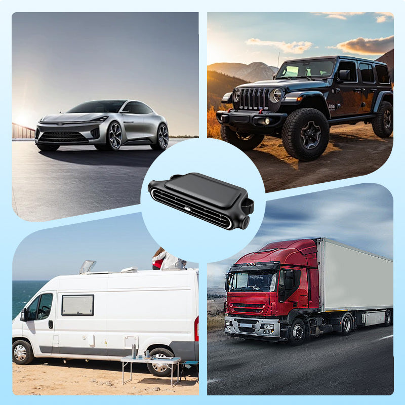 TREHASTIGHETER VINDJUSTERING: Användare kan välja mellan tre olika vindhastigheter (naturlig, bekväm och stark) för att matcha deras kylpreferenser. Den lättanvända kontrollknappen möjliggör snabba justeringar, medan den tysta driften säkerställer en lugn körmiljö utan irriterande bullerstörningar.