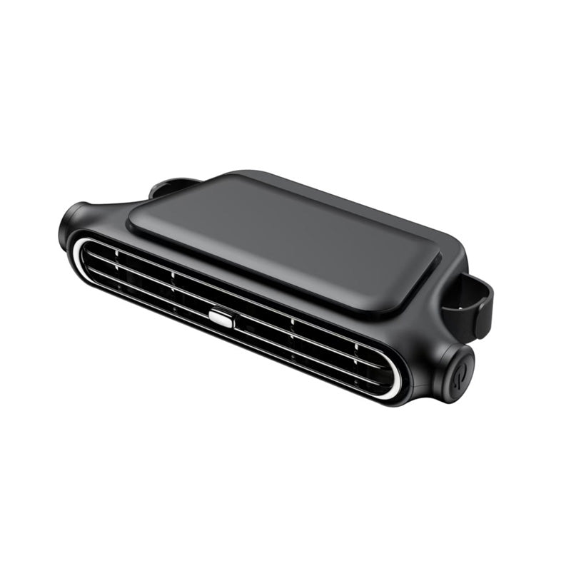 FLEXIBELT MOBILT LUFTUTSLAG MED JUSTERBARA VINKLAR: Fläktens rörliga luftutsläpp kan justeras upp och ner för att rikta luftflödet exakt där det behövs. Denna funktion säkerställer en bekväm upplevelse för förare och passagerare, vilket gör att de kan rikta in sig på specifika områden som ansikte, nacke eller rygg för optimal kylning.