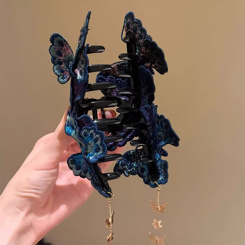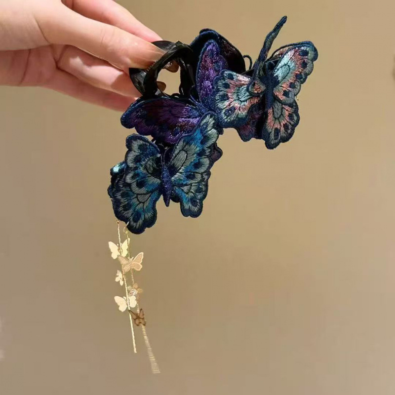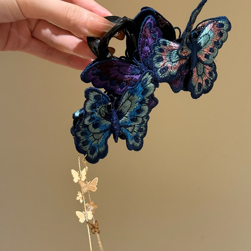 Livfulla broderade fjĂ€rilar verkar fladdra genom ditt hĂ„r â en unik design du inte hittar överallt, som omedelbart skapar en förtrollande atmosfĂ€r.