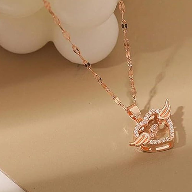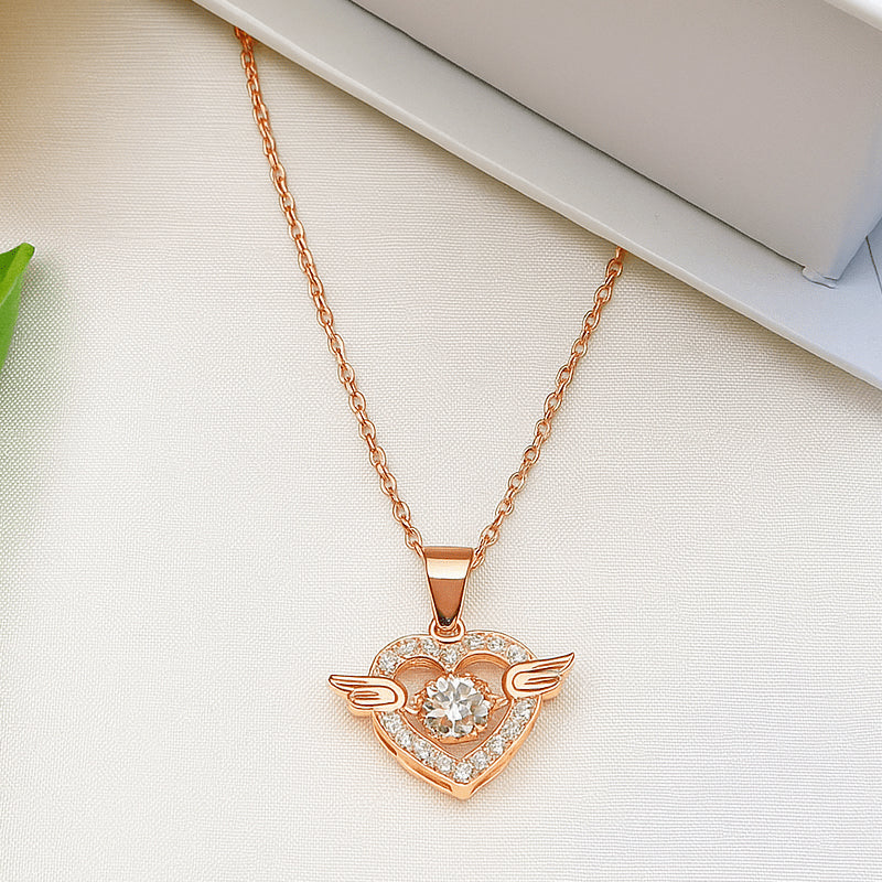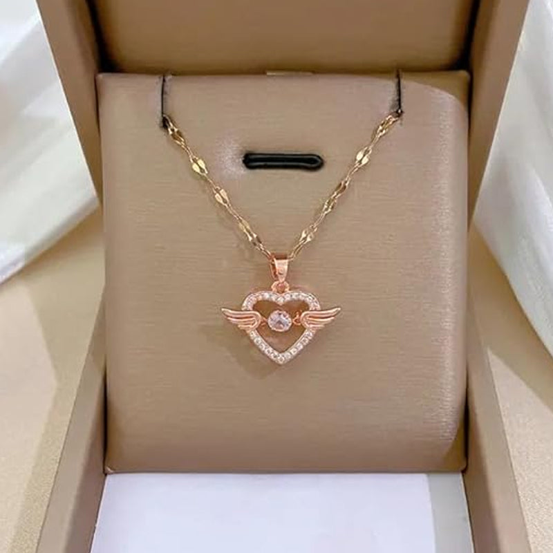 HJĂRTA- & VINGDESIGN - Detta halsband blandar ett klassiskt hjĂ€rta med fina Ă€nglavingar för en mjuk, graciös look. Det varma hjĂ€rtat kĂ€nns tröstande, medan vingarna ger en lĂ€tt, upplyftande kĂ€nsla.