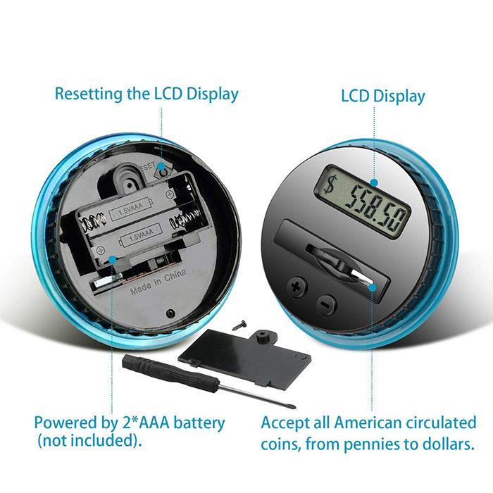 Digital LCD-display håller automatiskt reda på besparingar. Varje mynträknare har en digital LCD-display.