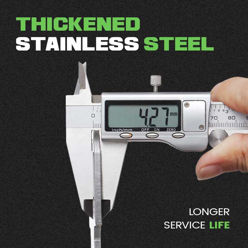 FÖRTJOCKAT RUSTFRITT STÅL - Användningen av förtjockat rostfritt stålmaterial ökar vikten och styrkan hos det rostfria stålet, vilket gör skiftnyckeln motståndskraftig mot deformation och lätt att hantera. Samtidigt rostar det inte lätt och är miljövänligt.