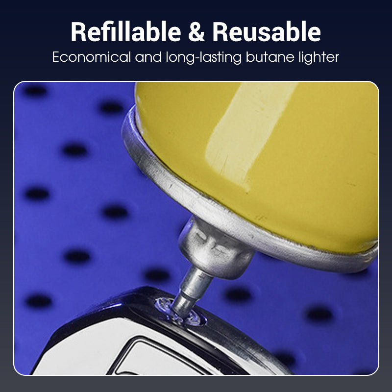 PĂ FYLLNINGSBAR OCH Ă TERANVĂNDBAR: Utformad för lĂ„ngvarig anvĂ€ndning med en praktisk pĂ„fyllningsbar brĂ€nsletank. Detta gör den till ett ekonomiskt och mer miljövĂ€nligt alternativ till engĂ„ngstĂ€ndare. Fyll bara pĂ„ med vanlig butan.