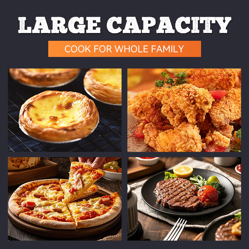 STOR KAPACITET OCH Mà NGSIDIG - Airfryern har en kapacitet pÄ 15 liter, vilket kan tillaga en hel kyckling, flera kycklingvingar, pommes frites och till och med en 18 cm pizza pÄ en gÄng. Den kan tillgodose behoven hos olika familjemedlemmar och olika matlagningsscenarier.