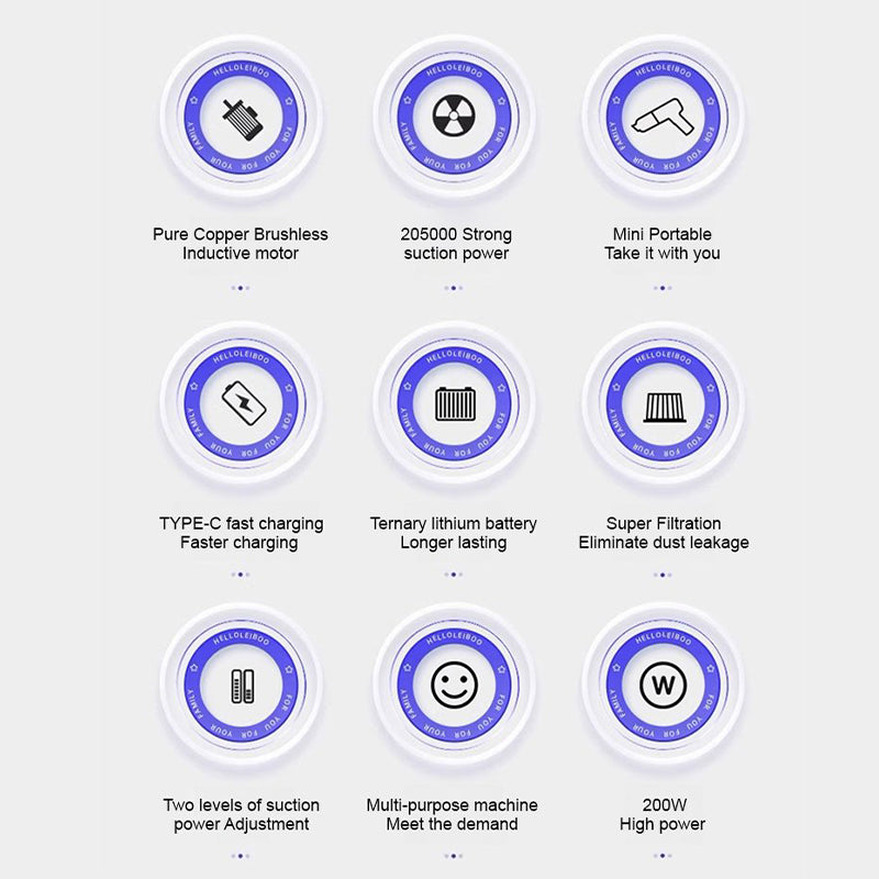 Paketet innehÄller:1*Kraftfull bÀrbar multifunktionell dammsugare, 1*lÄngt munstycke, 1*borstmunstycke, 1*laddningskabel, manual, hÄrtork
