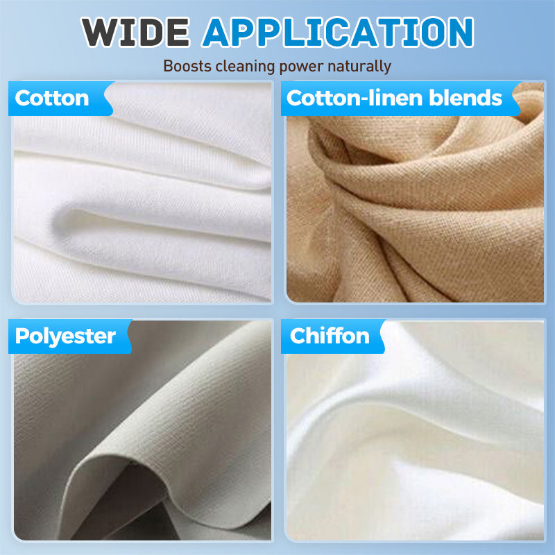 Lämplig för bomull, polyester, chiffong och syntettyger; den skonsamma formulan skyddar tygens mjukhet och är säker för mödrar och spädbarn.