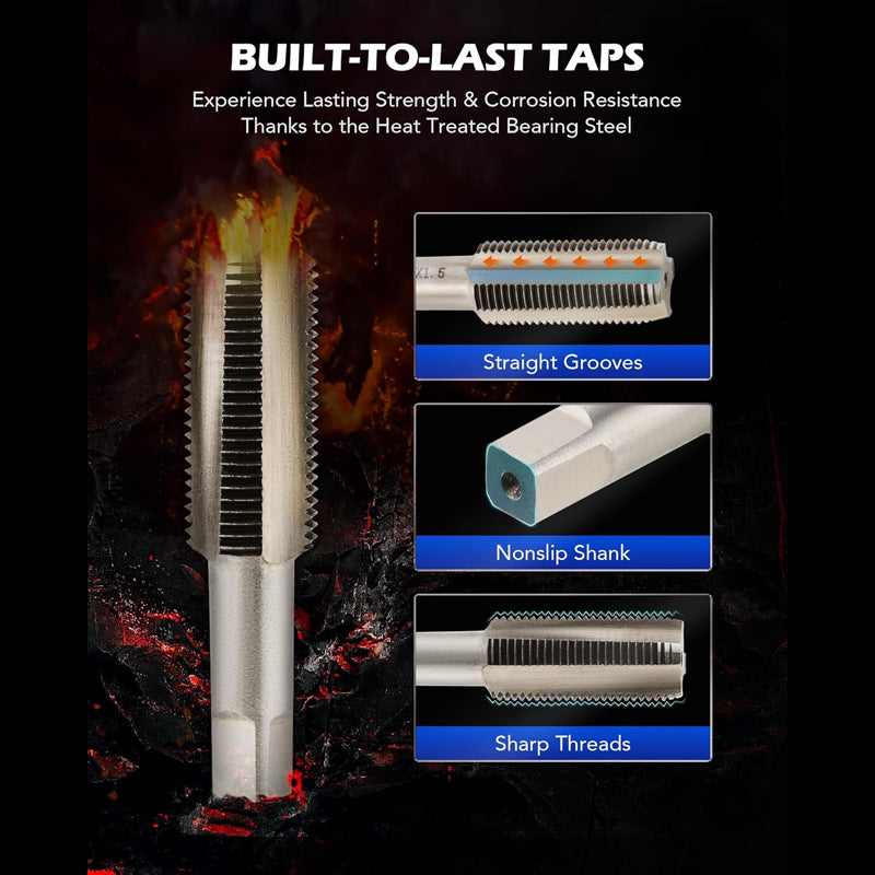 KOMPLETT REPARATIONSSATS â InnehĂ„ller 114 delar, inklusive gĂ€ngnycklar, avtappningspluggar och brickor i 6 vanliga storlekar. Detta sĂ€kerstĂ€ller att du har rĂ€tt verktyg för att reparera skadade oljetrĂ„gskruvar pĂ„ de flesta fordon.