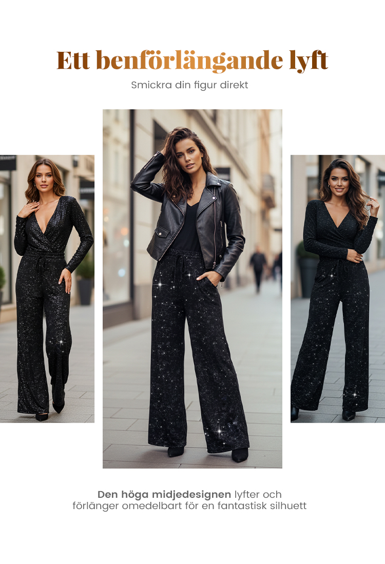 đSISTA DAGENS REA 60% RABATTđ„°Dambyxor med paljettmönster och vida ben och resĂ„r i midjan