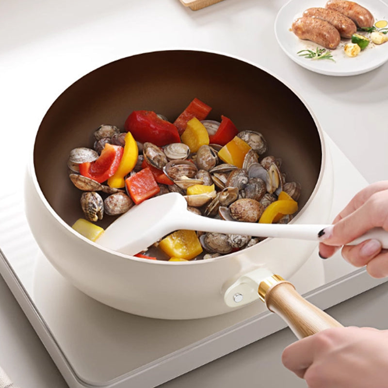 đTitankeramisk stekpanna med non-stick-belĂ€ggning för alla spishĂ€llar