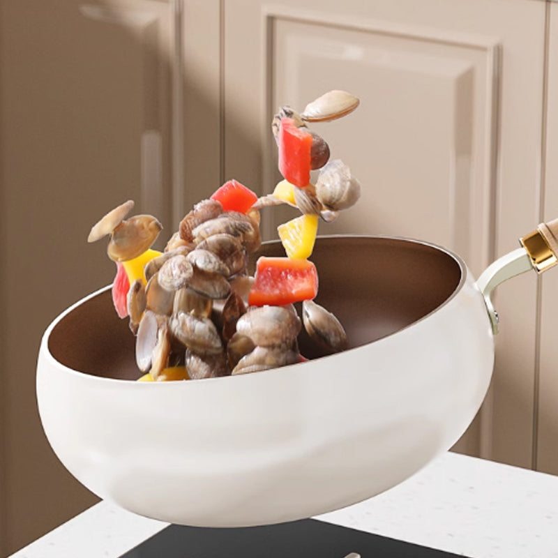 STOR KAPACITET DJUP DESIGN: Den unika högvÀggiga, djupa formen ger gott om plats för stora mÄltider och hÄller effektivt tillbaka stÀnk, vilket hÄller din spishÀll renare och gör wokningen kladdfri och bekvÀmare.