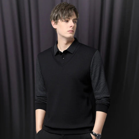 đ„55 % rabattđ„Randig skjorta med falska tweedkrage