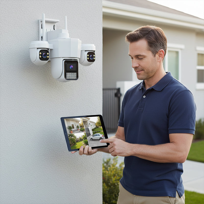 đïž Panoramautsikt med tre ögon, inget döda vinkeln-skydd | Intelligent 360° PTZ-sĂ€kerhetskamera đ
