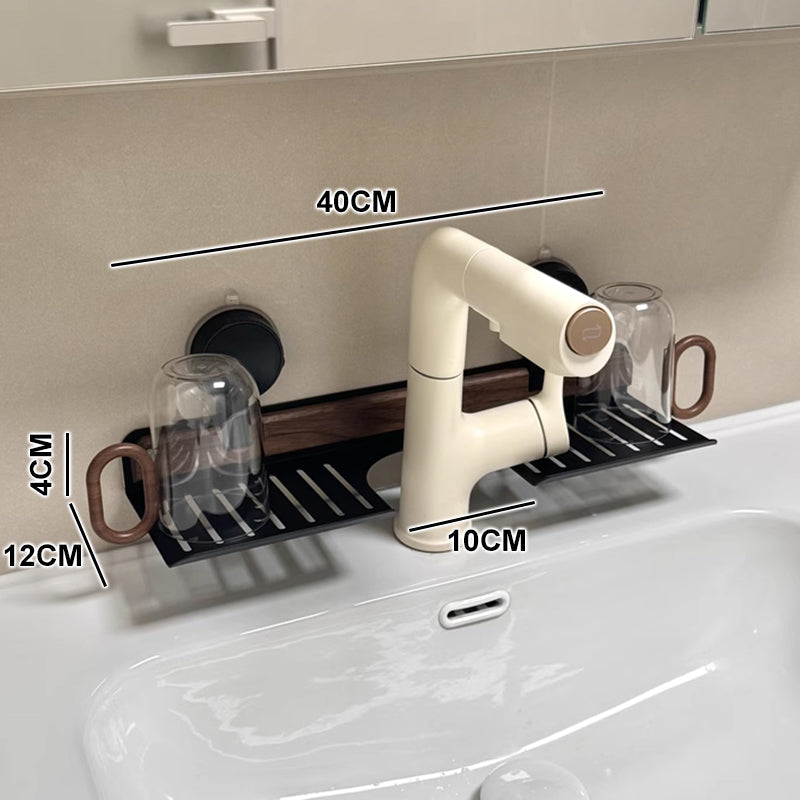Den bredare U-formade spÄret passar de flesta kranar, medan det ihÄliga avtappningsdesign förhindrar vattenansamling. Höjda kanter hÄller föremÄl sÀkra, och den slanka silhuetten ger en modern touch till vilket badrum som helst.
