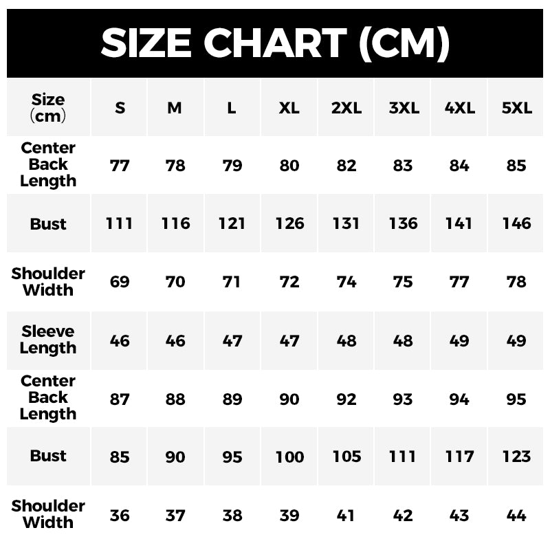 Storlekar: S, M, L, XL, 2XL, 3XL, 4XL, 5XL