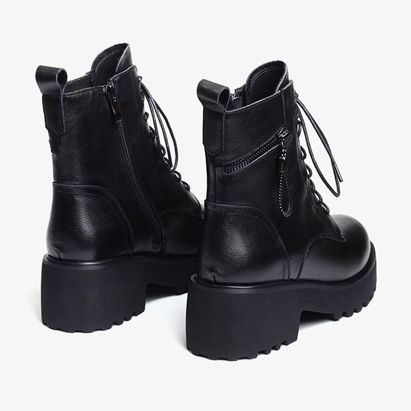 STYLISK DESIGN - Med en trendig chunky klack ger dessa stövlar både höjd och stabilitet och kombinerar mode med komfort. Snörningen och dragkedjan i sidan gör dem lätta att bära, medan den dekorativa dragkedjan ger extra känsla.